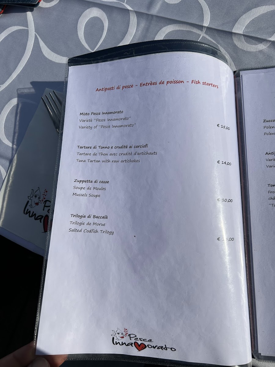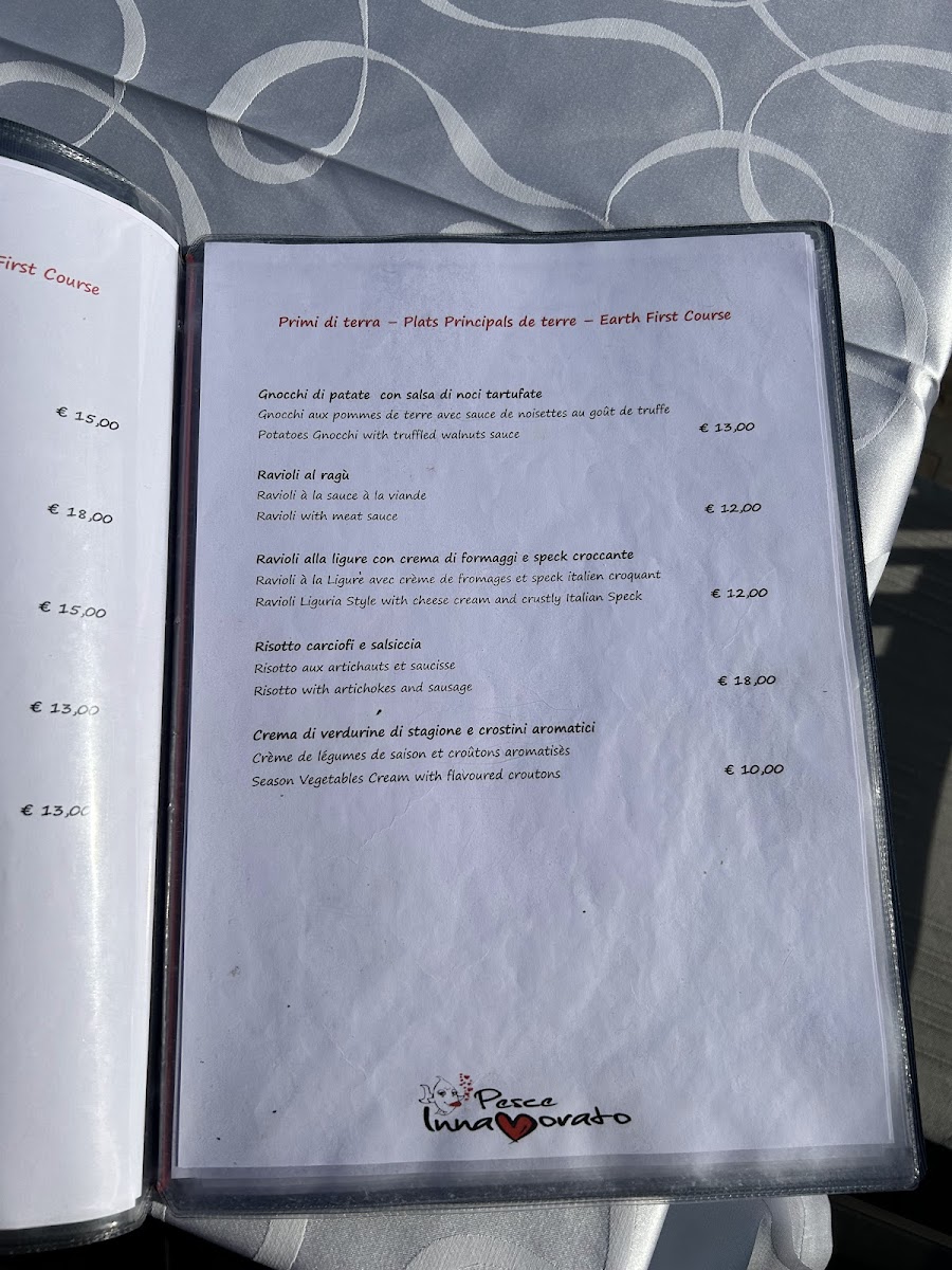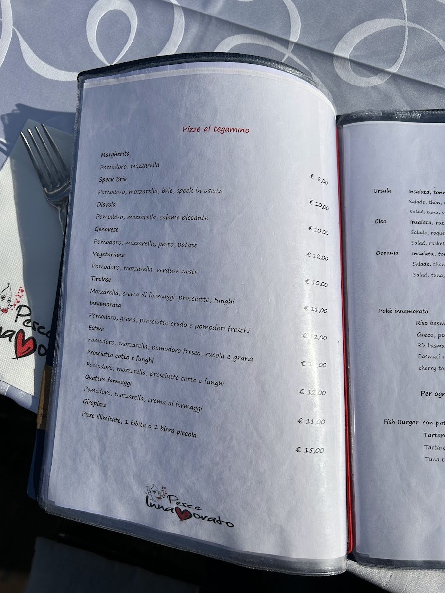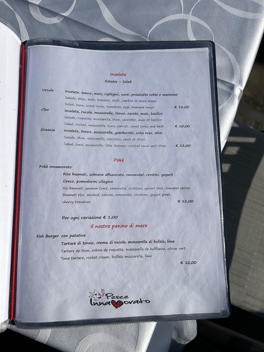 Introducing the menu of Ristorante Pizzeria Pesce Innamorato is a delightful journey into the heart of seaside Italian cuisine. Located in the charming town of Sanremo, this seafood haven boasts a menu that celebrates fresh, high-quality ingredients. From the heavenly fritto misto di pesce, perfectly crisped and bursting with flavor, to the exquisite pasta liguria, which harmonizes creamy cheese with al dente perfection, every dish tells a story of culinary passion. The star of the show, the croccante tono, has garnered rave reviews for its expertly cooked tuna that perfectly balances tenderness and richness. Dine al fresco while enjoying a scenic view of the harbor, as the attentive staff provides top-notch service. Don't forget to pair your meal with a refreshing spritz for the ultimate dining experience!