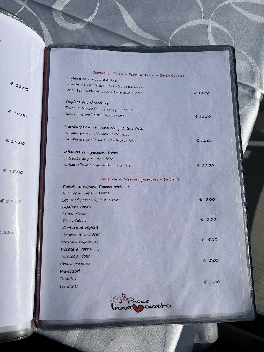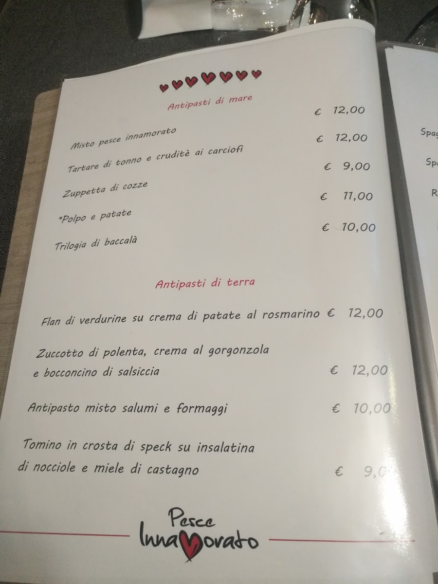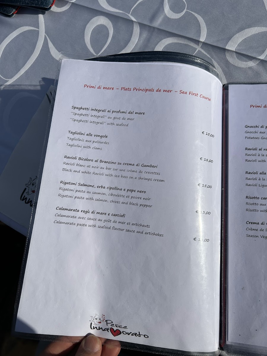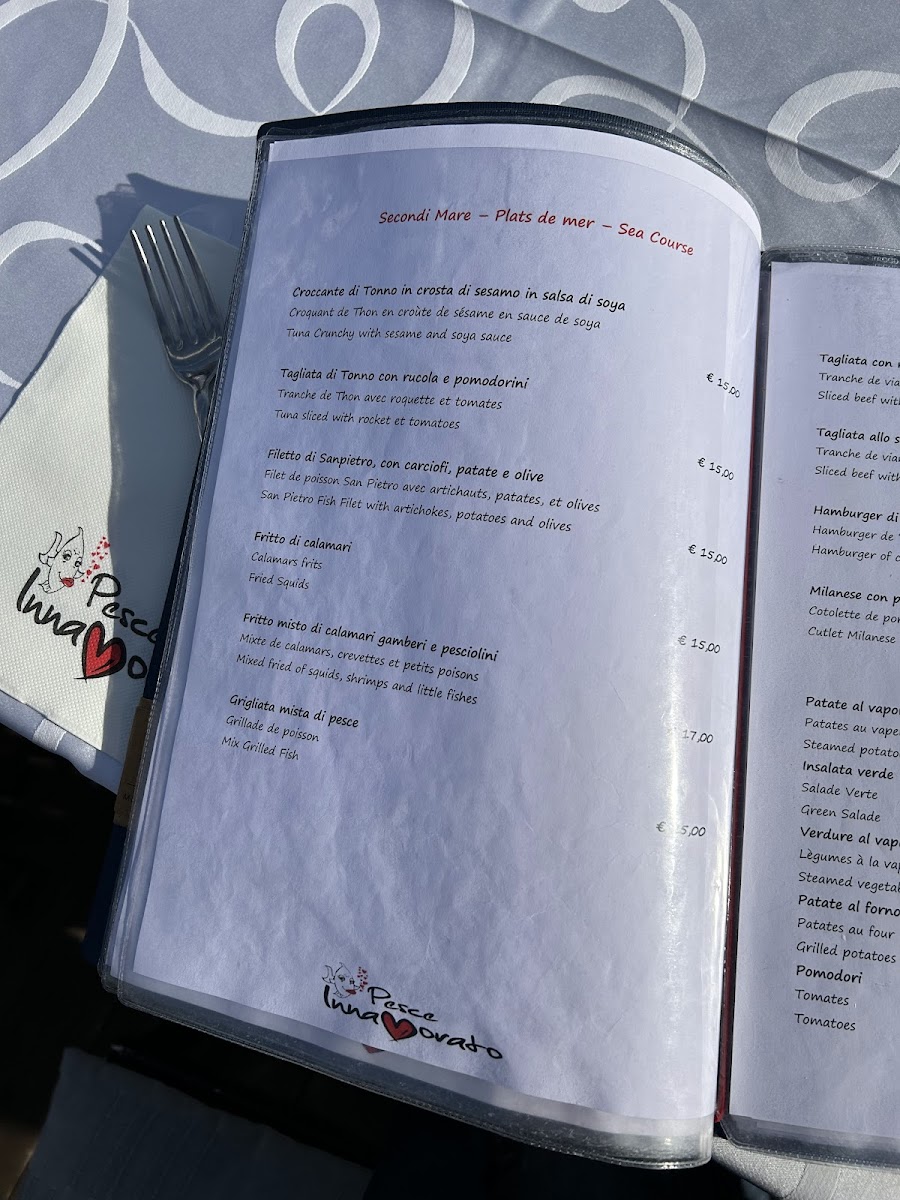 Introducing the menu of Ristorante Pizzeria Pesce Innamorato is a delightful journey into the heart of seaside Italian cuisine. Located in the charming town of Sanremo, this seafood haven boasts a menu that celebrates fresh, high-quality ingredients. From the heavenly fritto misto di pesce, perfectly crisped and bursting with flavor, to the exquisite pasta liguria, which harmonizes creamy cheese with al dente perfection, every dish tells a story of culinary passion. The star of the show, the croccante tono, has garnered rave reviews for its expertly cooked tuna that perfectly balances tenderness and richness. Dine al fresco while enjoying a scenic view of the harbor, as the attentive staff provides top-notch service. Don't forget to pair your meal with a refreshing spritz for the ultimate dining experience!
